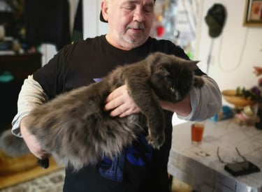 Fiona, our stunning 6kg blue longhair queen, pairs with Charles, the 16kg xxl red legend from Rochdale.